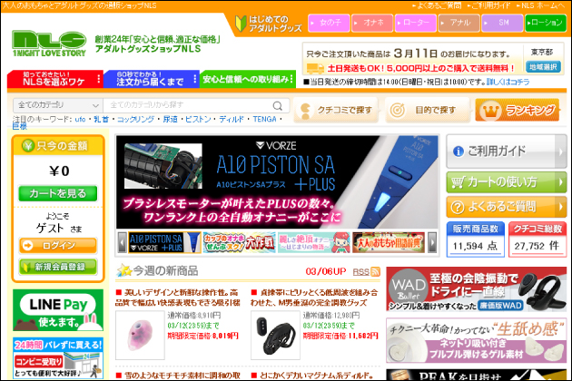 NLSは西暦2000年から運営をしている業界最大手のアダルトグッズ通販。現在の通販は競争時代に突入しており、ユーザーの満足度が低い会社はスグに潰れます。その点、NLSはアダルトグッズ通販としては超老舗。安全・安心レベルが他の通販とは桁違い思って間違いありません。